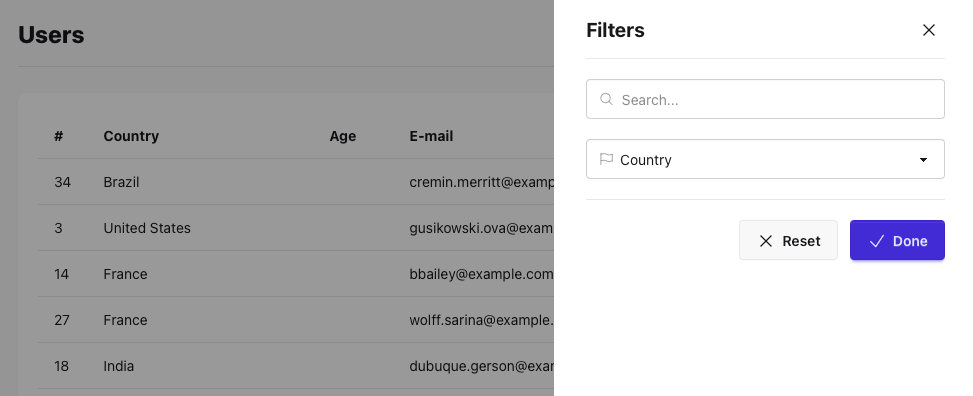 In our $headers property let's replace the age column for country.name and refresh the page to see the result.